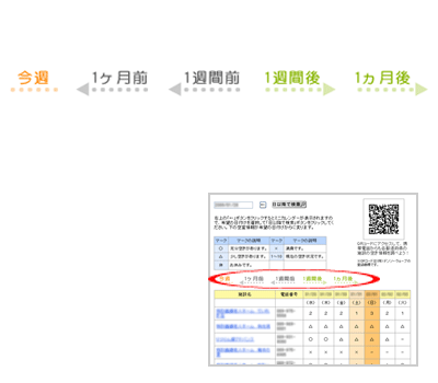 一覧リストの上にある「今週、1ヵ月後・・・」の文字をクリックすると、表記の通りに日が移動します。