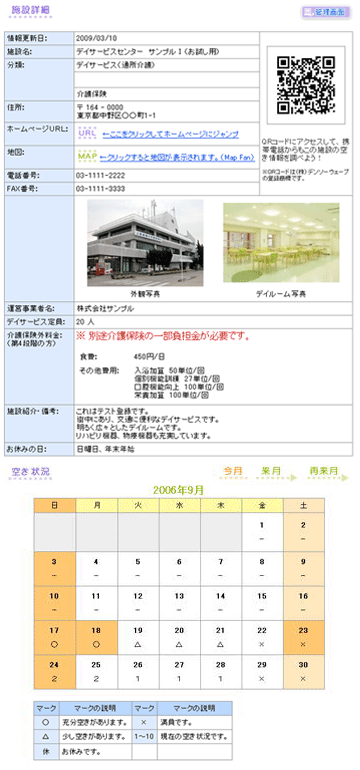 施設ホームページや地図をクリックすると、別画面で表示されます。 |